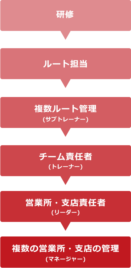 個人の希望や適性に応じて多彩な道に進めます!リーダーや本社勤務などチャンスが多い企業です。