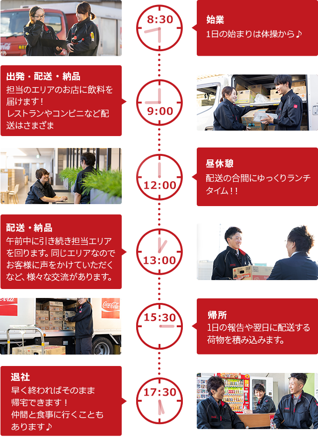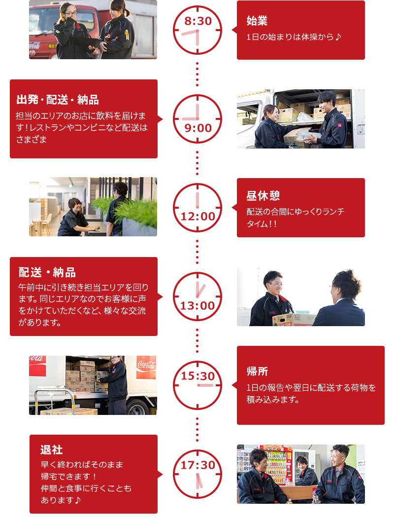 | 勤務時間 | 8:00~19:00※エリア・職種により変動あり |