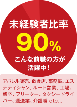 | 条件 | 未経験大歓迎★職務経験不問! 40歳迄(長期勤続によるキャリア形成を図るため) 高卒以上 要普通自動車免許 (AT限定可) |