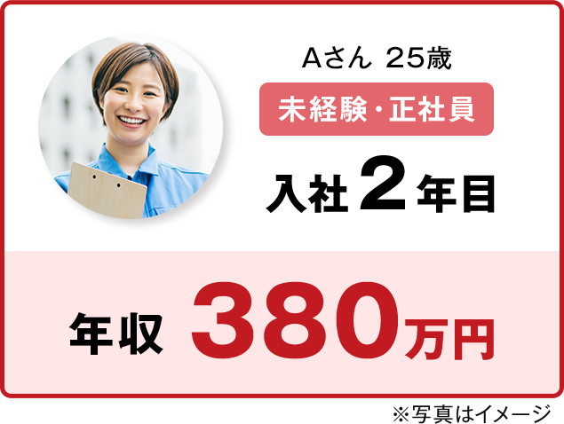 月給25万以上 ≪年収例≫ 380万円/入社2年目/25歳 450万円/入社8年目/32歳 |