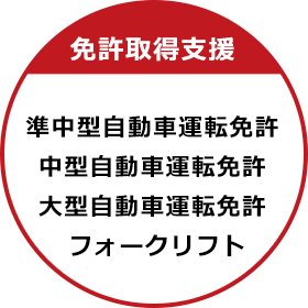 ATの免許で問題無いですが、個人の希望で中型や大型の免許取得も可能です。8日程度の合宿で取得可能で、費用は会社が立て替えます!