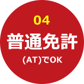 ATの免許で問題無いですが、個人の希望で中型や大型の免許取得も可能です。8日程度の合宿で取得可能で、費用は会社が立て替えます!